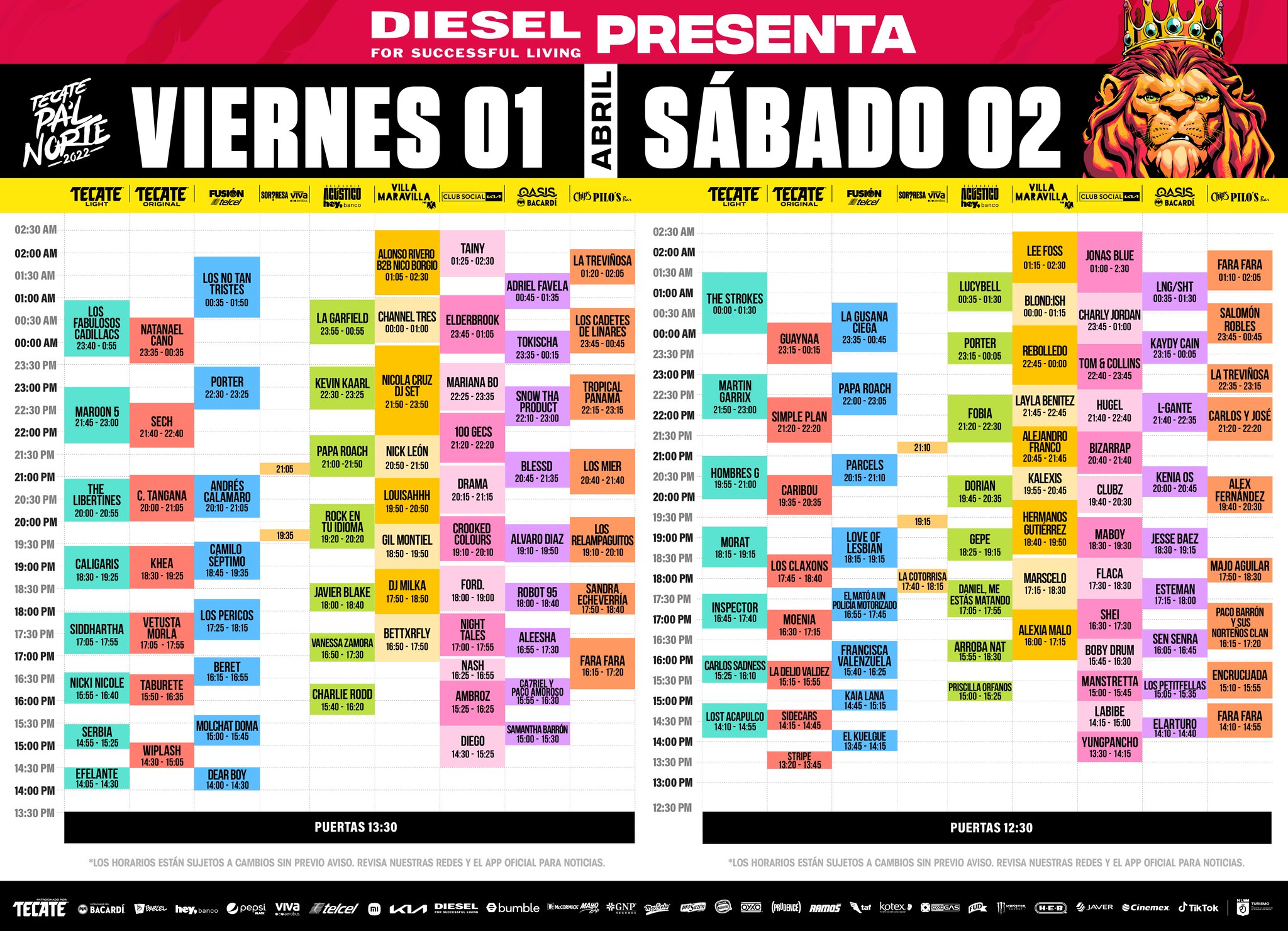 Afortunadamente, este 23 de marzo, los organizadores de Pa’l Norte soltaron el orden en que tocarán todas las bandas y artistas que se presentarán en el festival y claro que es momento de tomar algunas decisiones fuertes, como definir a quiénes verán durante toda la jornada (cof cof, porque por ahí se empalma The Libertines con C. Tangana y Caribou con Parcels). De cualquier manera y para que chequen el dato, a continuación les dejamos los horarios oficiales de Tecate Pa’l Norte 2022: