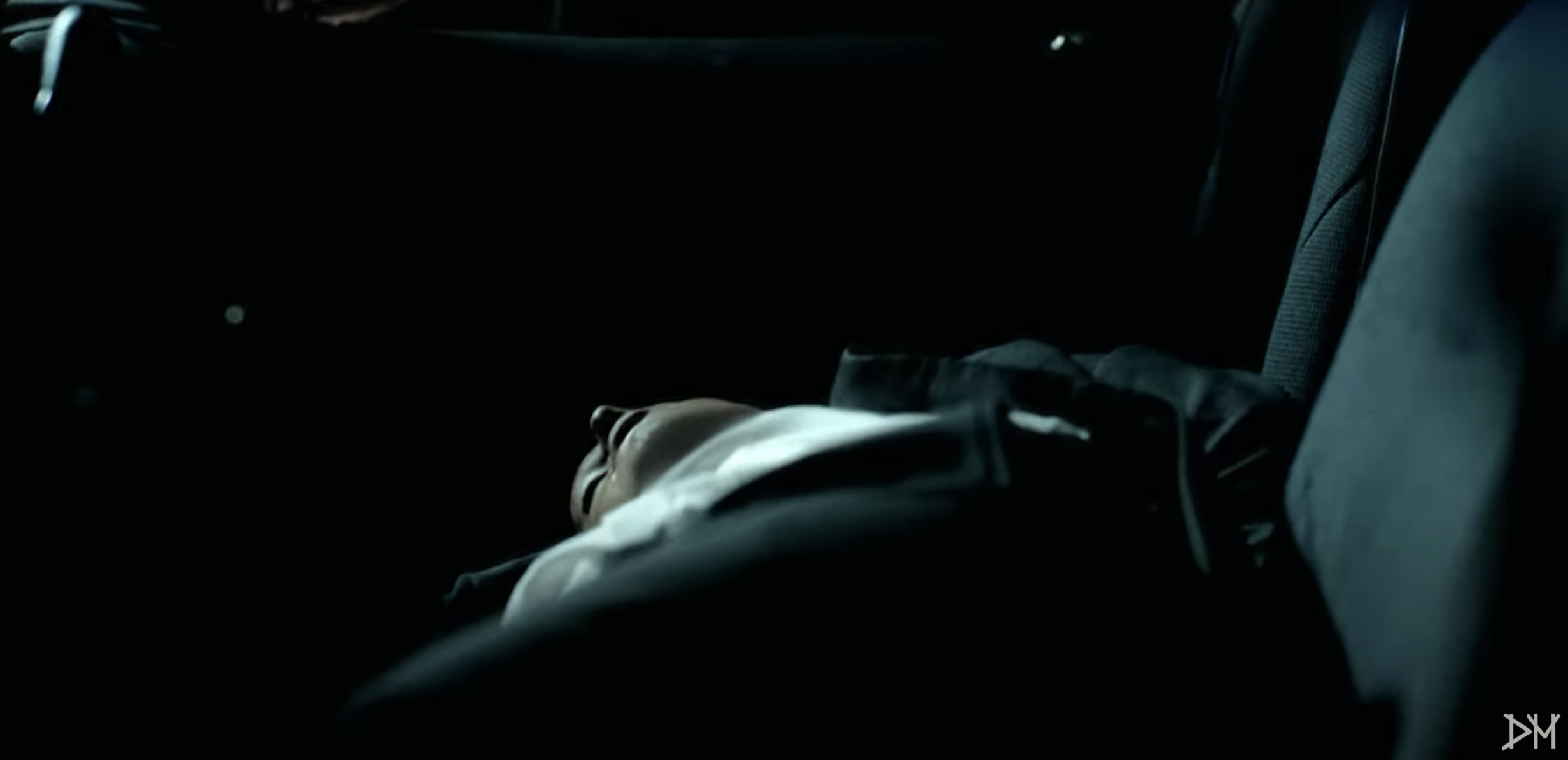 La historia sigue marcada por las vueltas de las llantas del carro. En su camino golpea a una persona y lo arroja al suelo. El hombre enmascarado lo nota y comienza a retorcerse, parece estar atado y amordazado con cinta adhesiva. Su automóvil golpea contenedores de basura hasta que es perseguido por una patrulla de la policía.