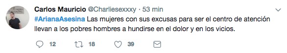 Súper de mal gusto el hashtag #ArianaAsesina y todos los enfermos machistas misóginos que lo están haciendo TT.