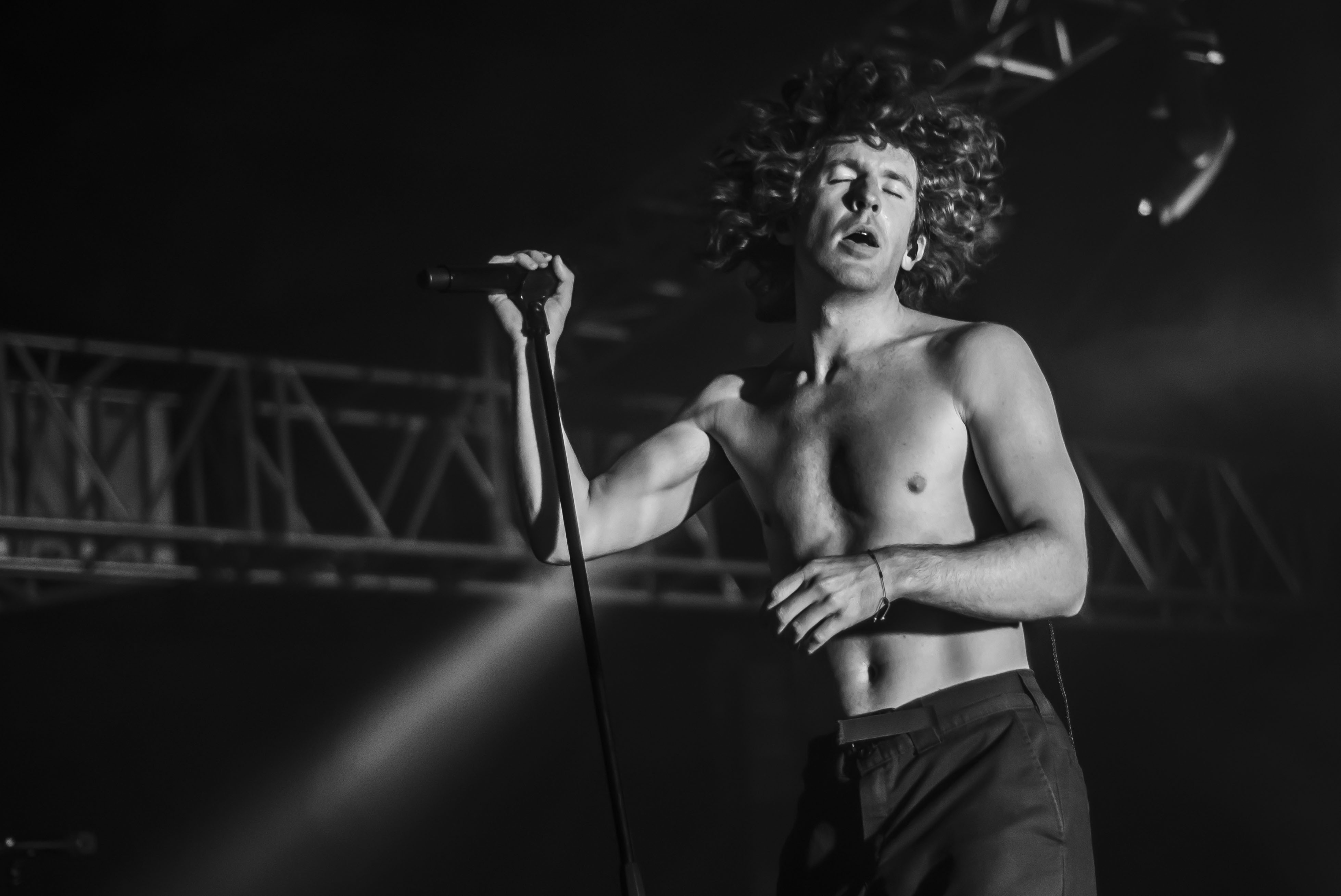 Un tipo sin playera andaba ahí, trepado en la estructura de uno de los pilares del Pabellón Oeste para ver el show. Y desde luego que la gente le pidió que saltara. Era el momento de honrar la vieja y casi olvidada tradición del crowdsurfing, pero no se animó…
