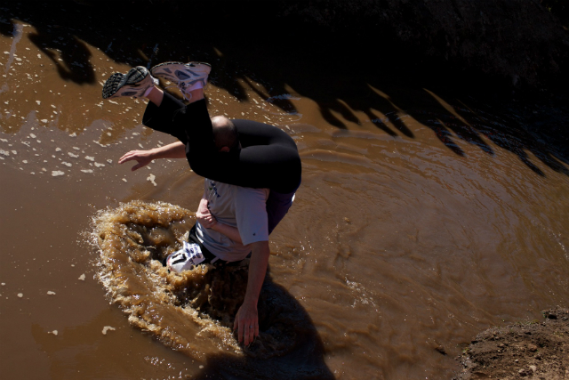 Te sientes como si estuvieras en un entrenamiento militar solo que acá hay muchísimo lodo.
