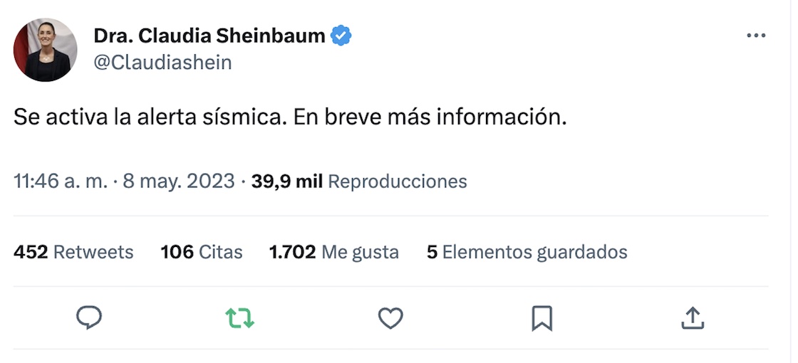 Por medio de su cuenta de Twitter, el Sismológico Nacional explicó que no opera ninguna alerta sísmica. Como les contamos por acá, la alerta sísmica es emitido por el Centro de Instrumentación y Registro Sísmico (CIRES). Ojo, el error no salió del CIRES, sino del C5.