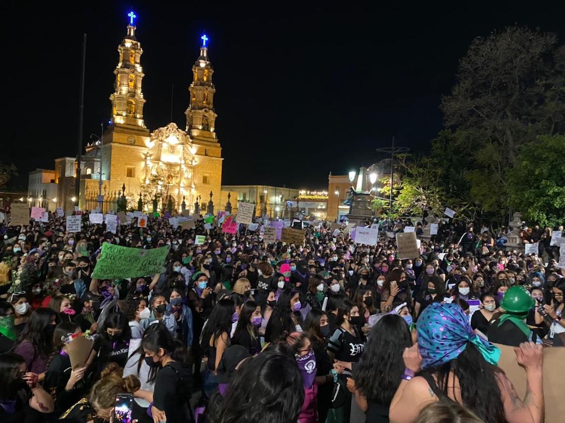La marcha salió de la Fiscalía General de Justicia —la convocatoria citó a las asistentes a las 7 de la tarde para hacer un recorrido nocturno por la misma Fiscalía y la Comisión Estatal de Derechos Humanos— y llegó a Exedra (la Plaza de Armas) para exigir que las autoridades esclarezcan los casos de feminicidios pendientes y trabajen por la legalización del aborto.