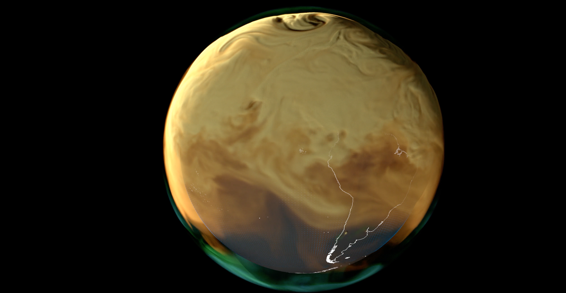 Una de las primeras cosas que son visibles es que Norteamérica, con sus corredores industriales que empiezan en México pero cubren a Estados Unidos completamente, está siempre rodeada de una nube café de CO2. Vemos cómo en los primeros meses del año, el planeta está despejado pero —cuando llegamos a noviembre o diciembre— todo el hemisferio queda contaminado.