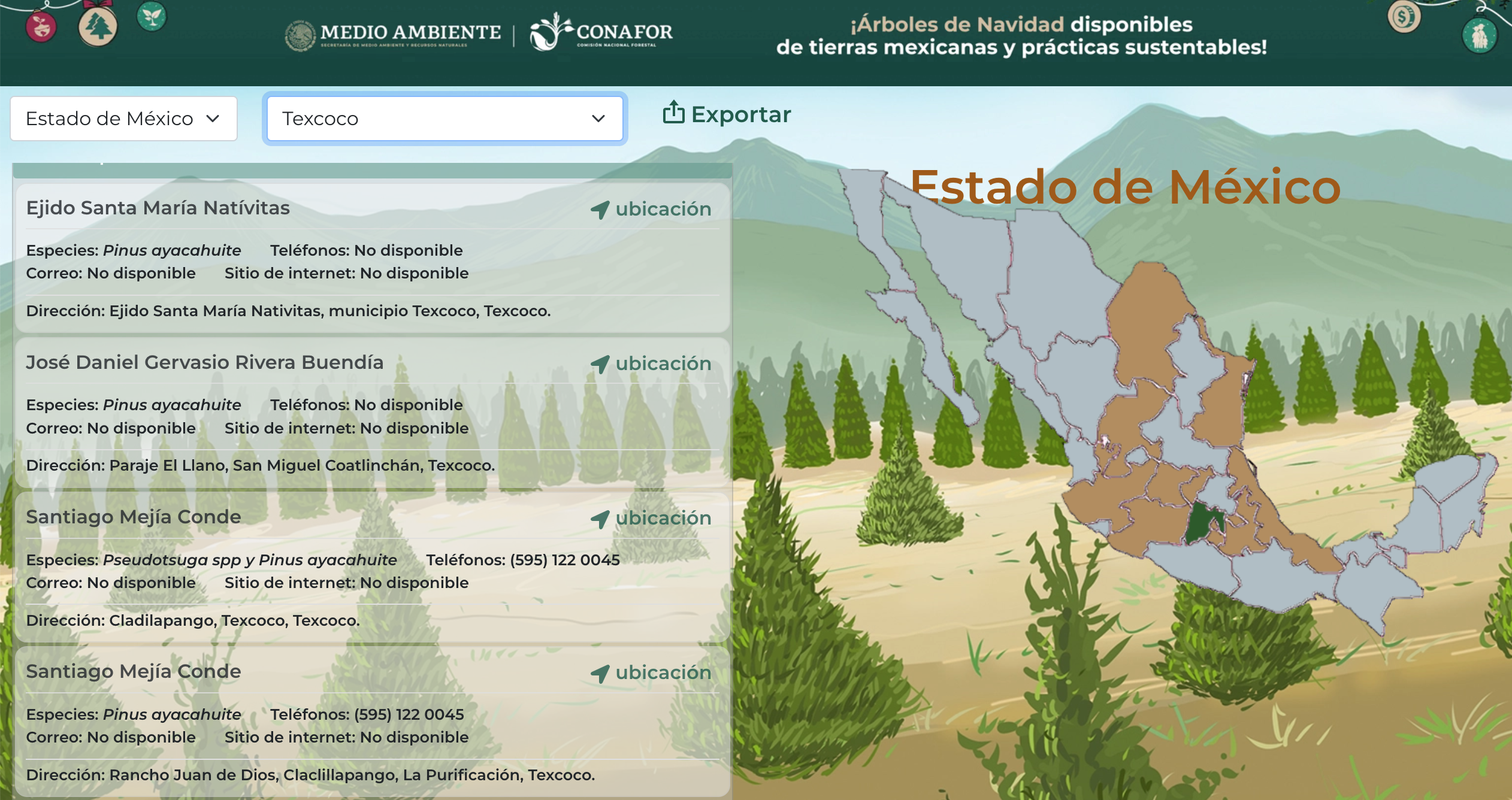 En esta lista podrás encontrar las plantaciones certificadas en 13 estados y por municipio. Es decir, tu podrás entrar a la plataforma, poner el estado en el que vives (si es que aparece en el sistema) y tendrás una lista de plantaciones por municipio.