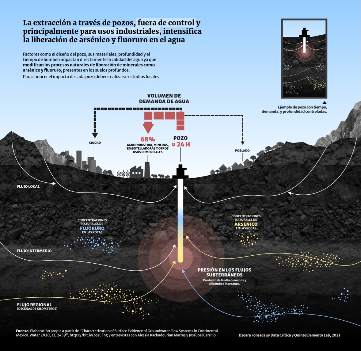 Una investigación de Data Cívica y Quinto Elemento Lab revela que en los pozos de casi todo el país, los niveles de arsénico y fluoruro ya superaron los máximos permitidos de la Organización Mundial de la Salud (OMS).