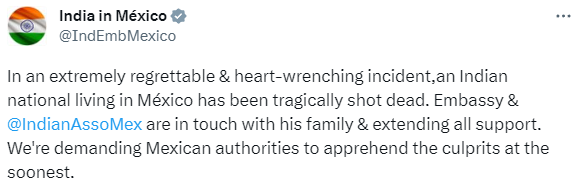 De igual forma la Embajada de India en México se pronunció en redes sociales sobre lo ocurrido. Informaron que están en contacto con las familias de las víctimas para brindarles todo el apoyo necesario, pero exigen a las autoridades mexicanas que hagan algo.