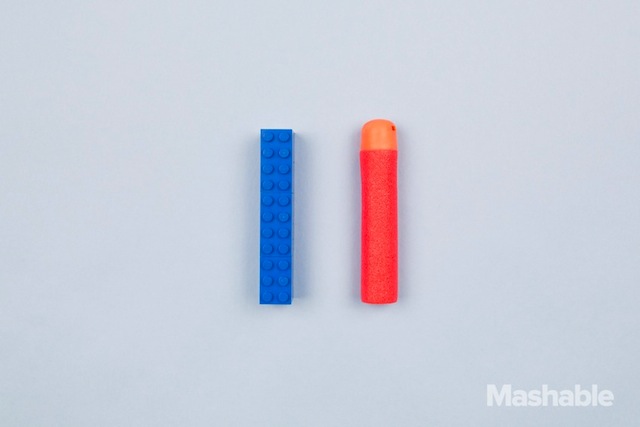 Este es el pene representado con legos, el azul está en un estado flácido y el rojo con erección: