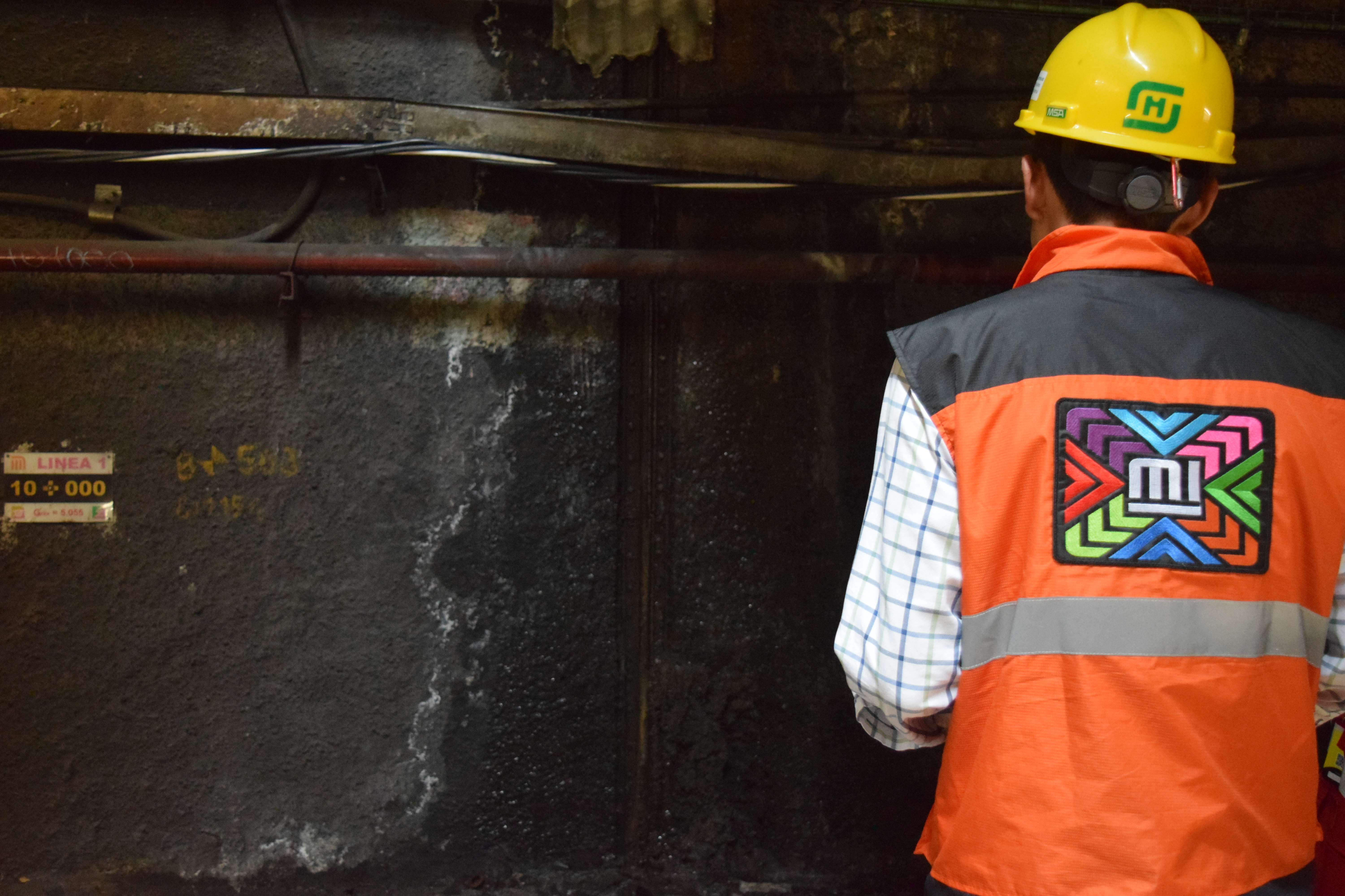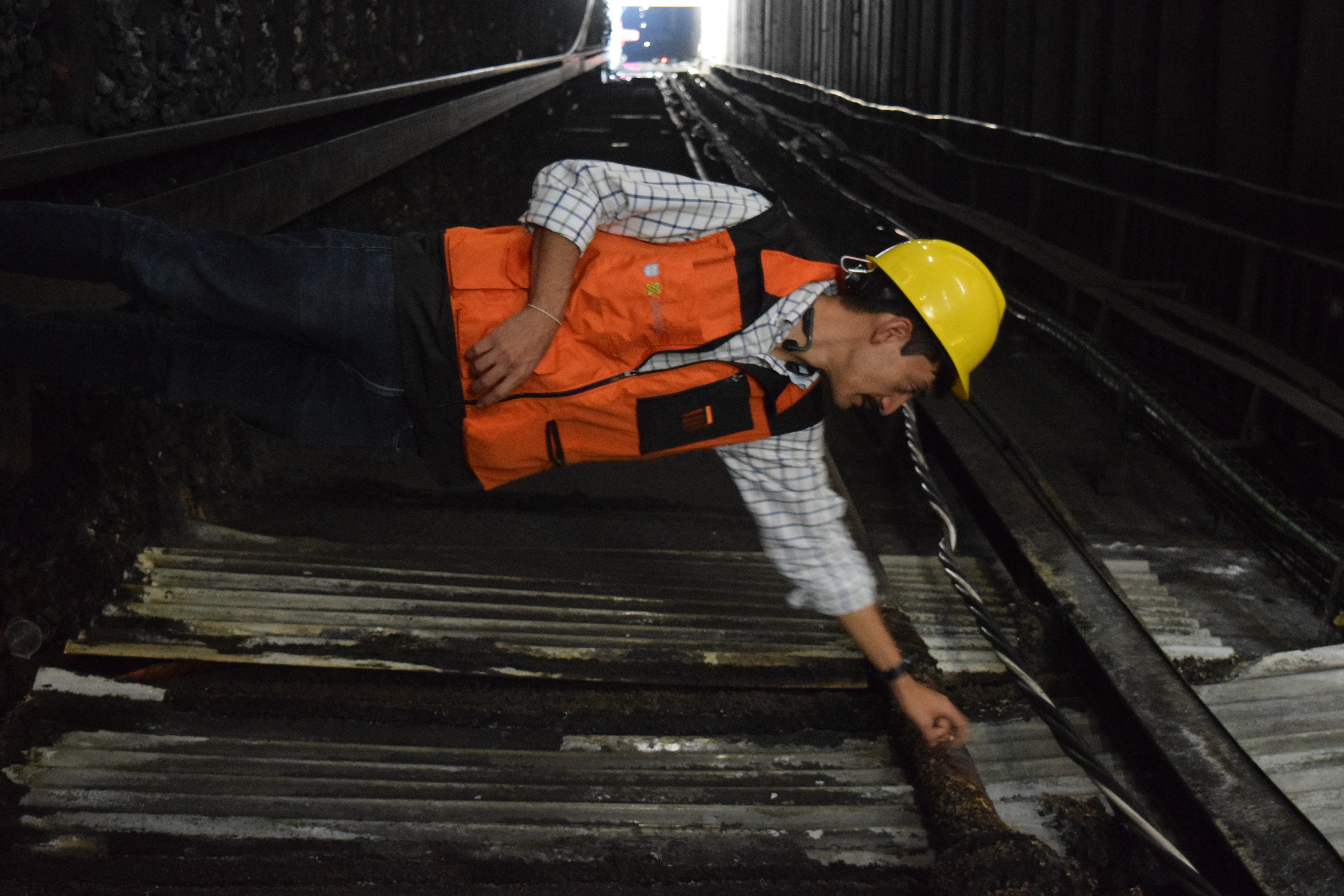 Después de ponernos los chalecos y los cascos de seguridad bajamos con mucho cuidado a un tramo del túnel de la estación Salto del Agua. Siempre estuvimos acompañados de elementos de seguridad industrial que nos daban indicaciones para no tener un accidente.