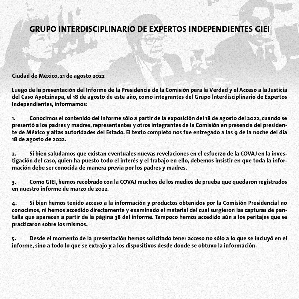 Sin embargo, tras la entrega del informe, el GIEI compartió estas observaciones: