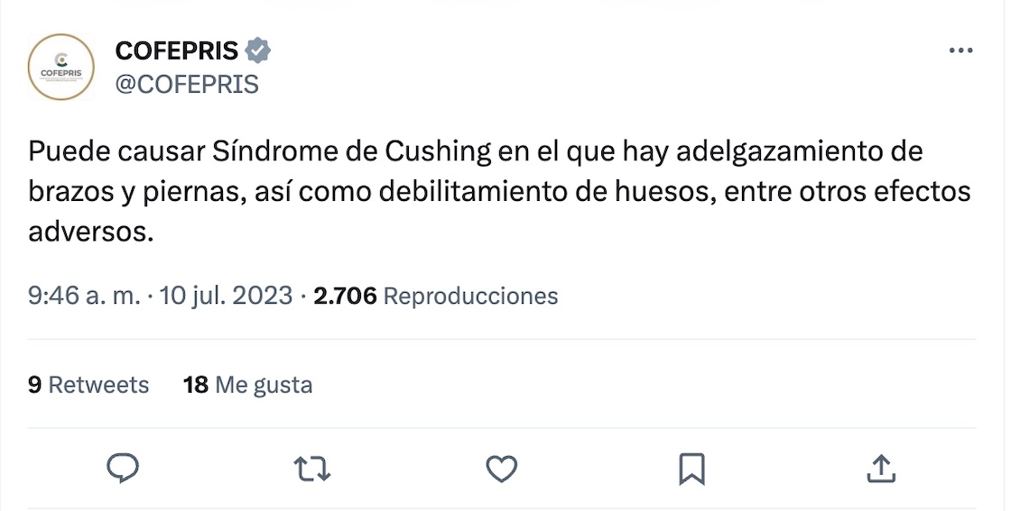 Peeeeero que sin una receta o supervisión médica puede causar reacciones graves, que van desde el aumento de la presión hasta el incremento de glucosa en la sangre, osteoporosis o lo que conocemos como Síndrome de Cushing. Chequen por acá la información de la Cofepris.