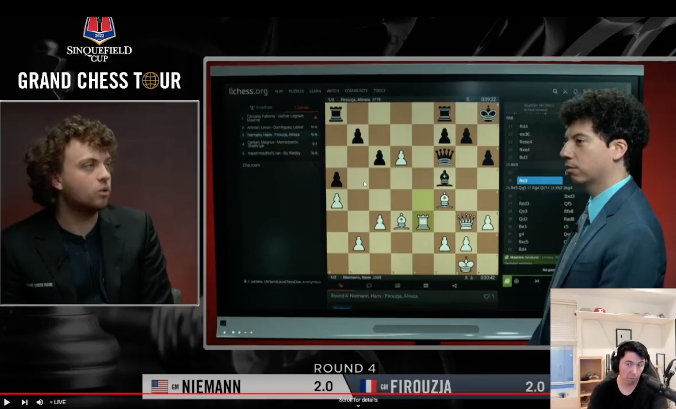 Niemann derrotó a Carlsen en la tercera ronda y rompió con su racha de 53 partidas clásicas sin perder. Poco después de haber ganado declaró: “Él (Carlsen) debe estar muy desmoralizado por perder contra un idiota como yo. Debe ser vergonzoso para el campeón del mundo perder contra mí”.
