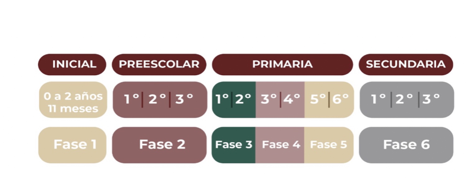 En primer lugar hay que recordar que la SEP introdujo las Fases de Aprendizaje que agrupan los grados escolares —ya sabe, primero, segundo, tercero, pero que oficialmente son 3 fases de preescolar, 6 de primaria y 3 de secundaria