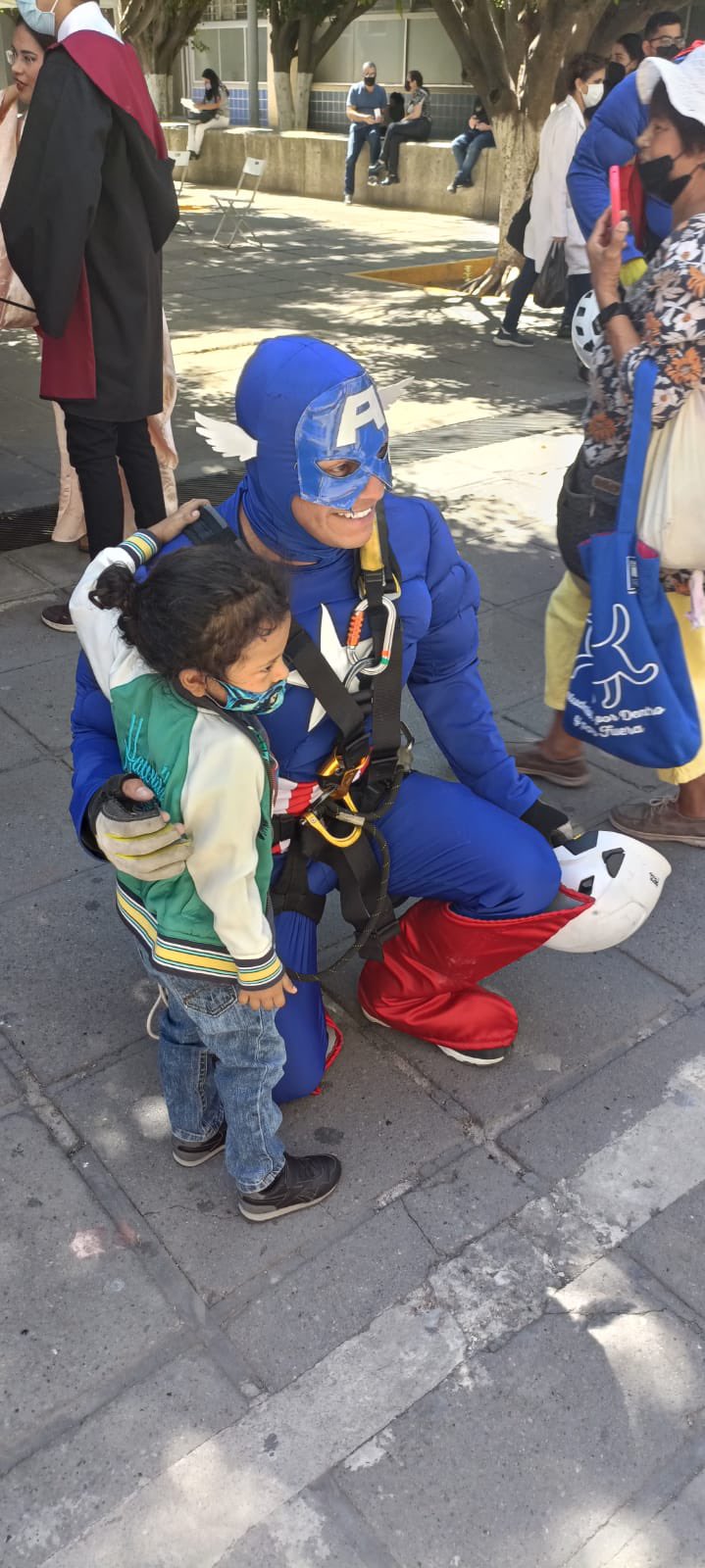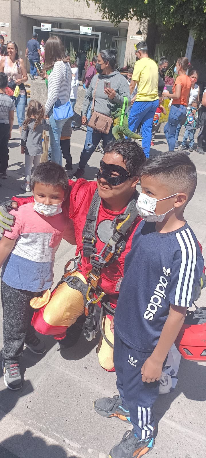 “Hoy cambiamos los cascos por los trajes de super héroes para visitar la Torre de Especialidades del Hospital Civil viejo, buscando llevar un momento de alegría a los pequeños que pasan por un momento difícil”.