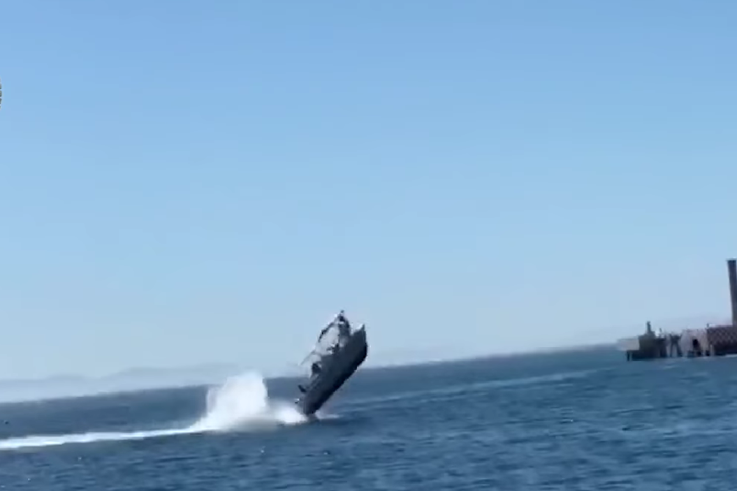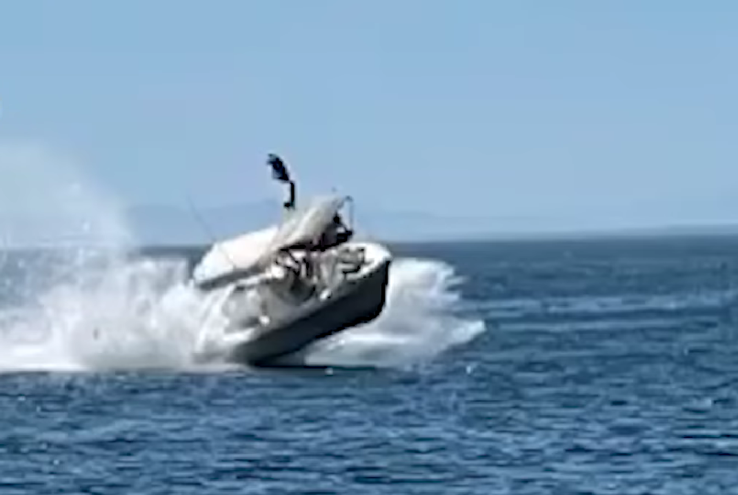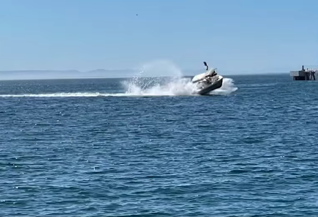 Sin embargo, en su trayecto golpeó a una ballena que salía del agua y, debido a la velocidad que llevaba, el bote salió volando por los aires. Como podrás ver en el video que publicó la propia dependencia, una persona de hecho salió arrojada de la pequeña embarcación tras el impacto.