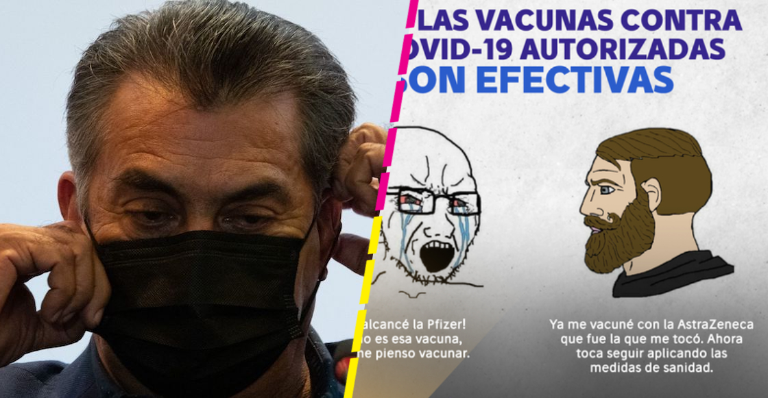 En la imagen publicada por el gobernador de Nuevo León, vemos a un personaje en pleno llanto, bien triste porque no le tocó la vacuna de Pfizer. Del otro lado, un macho alfa lomo plateado, quien dice estar muy contento por recibir la AstraZeneca.
