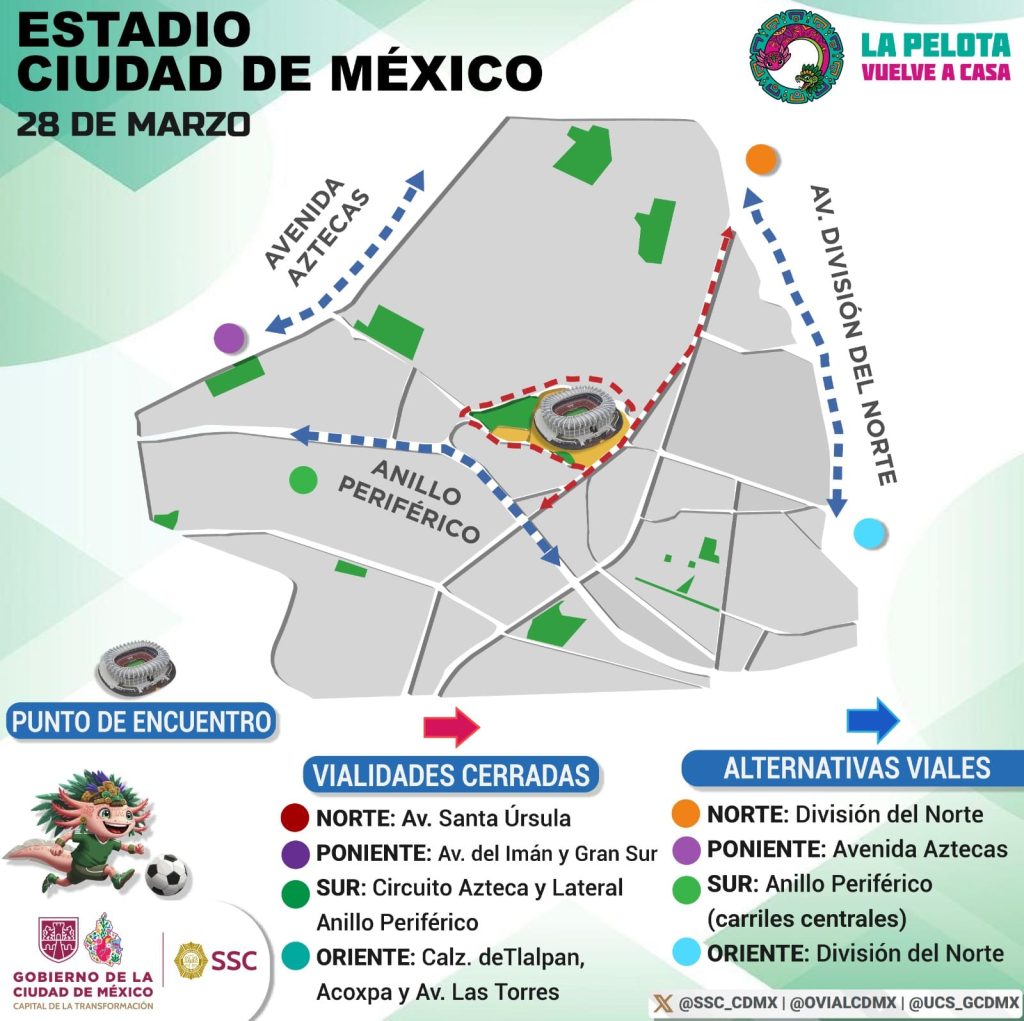 Este sábado 28 de marzo, la movilidad en la CDMX se verá afectada debido al cierre de algunas vialidades cercanas al Estadio Banorte: