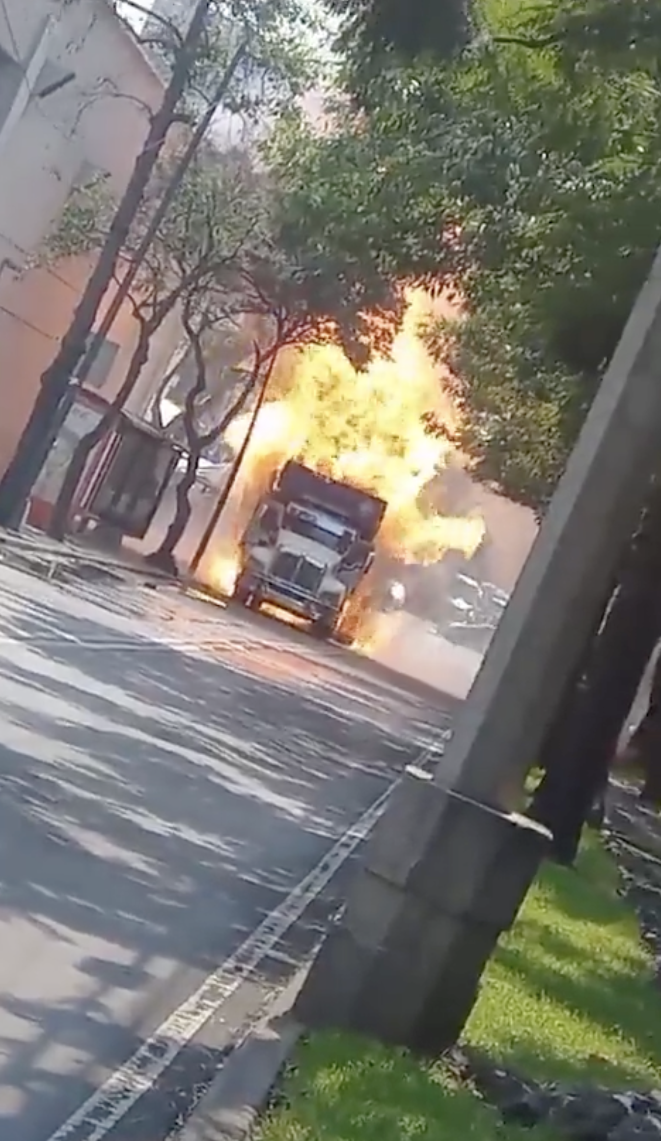 En redes sociales se publicaron fotos y videos del momento de las explosiones por los tanques de gas en el camión. Incluso en este video se escucha una explosión fuerte cuando el camión ya estaba en llamas.