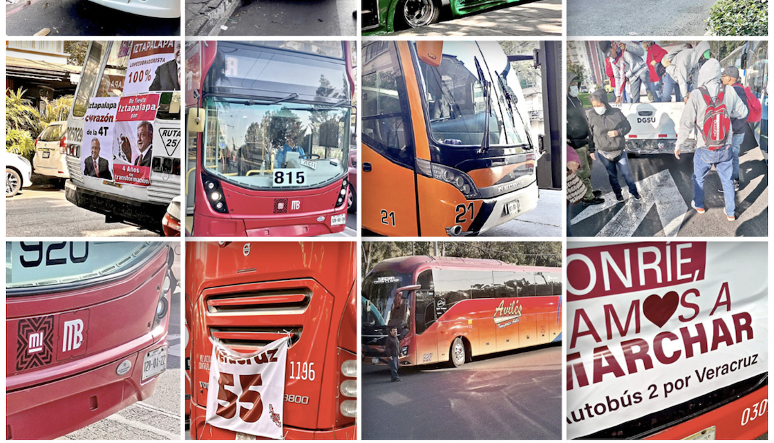 Y además, como si eso no fuera suficientemente extraño, también encontraron que había 9 unidades del Metrobús de la CDMX que, en lugar de llevar gente en sus rutas tradicionales de transporte público —que ya ven que funciona veloz—, estaban llevando personas a la marcha de AMLO.