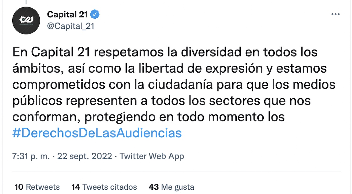 Por acá les vamos a contar acerca de una conversación que está en redes sociales, sobre todo en Twitter, y que implica una serie de cuestionamientos a la base ética —y el rollo de los derechos de las audiencias— de Capital 21, un canal público que abrió sus puertas a un panel acusado de promover la transfobia y NBfobia.