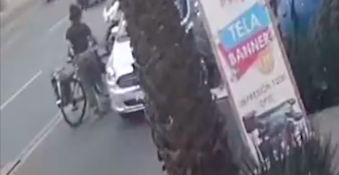 Si ya le echaron un ojo al video, quizá se dieron cuenta que hubo otro culpable de que la ciclista sufriera este accidente: así es, se trata del conductor de la camioneta que está estacionado en el mero carril de contraflujo.