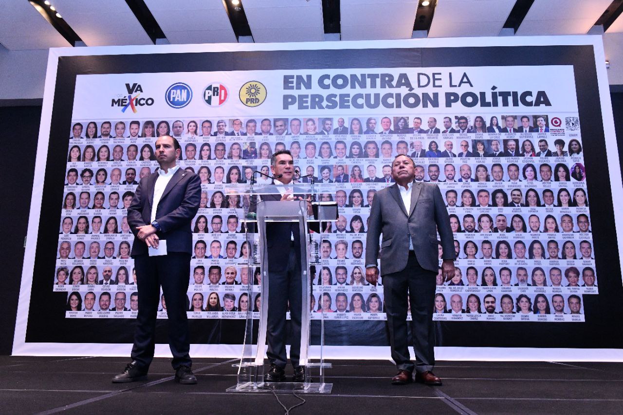 “La coalición Va por México no va a aceptar ningún tipo de persecución contra ningún opositor, sea político, sea medio de comunicación, sea periodista, sea científico, sea ambientalista, ningún ciudadano que se atreva a disentir y levantar la voz podrá ser perseguido político en este país”, dijo en la conferencia el dirigente del PAN, Marko Cortés.