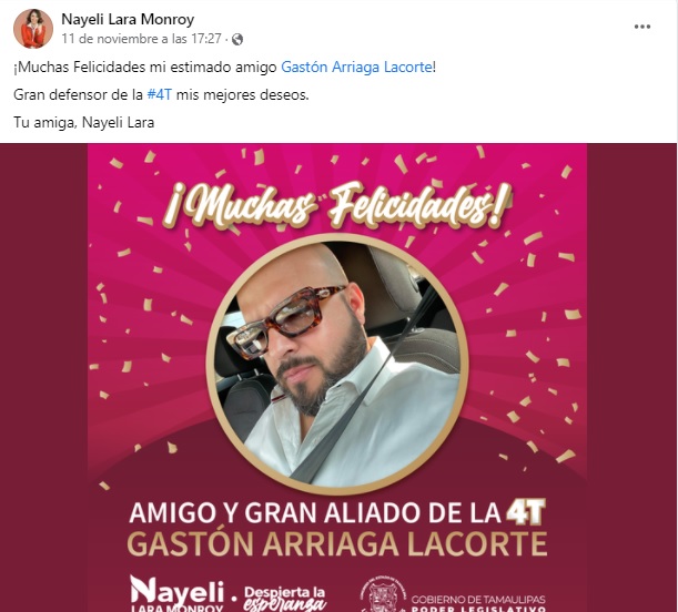 Aunque en sus redes sociales Gastón Arriaga no muestra gran vínculo con Morena… incluso se podría ver como un simple militante o seguidor de la 4T, los mensajes que le dedican miembros de la élite partidista en Tamaulipas apuntan a que es bastante reconocido.
