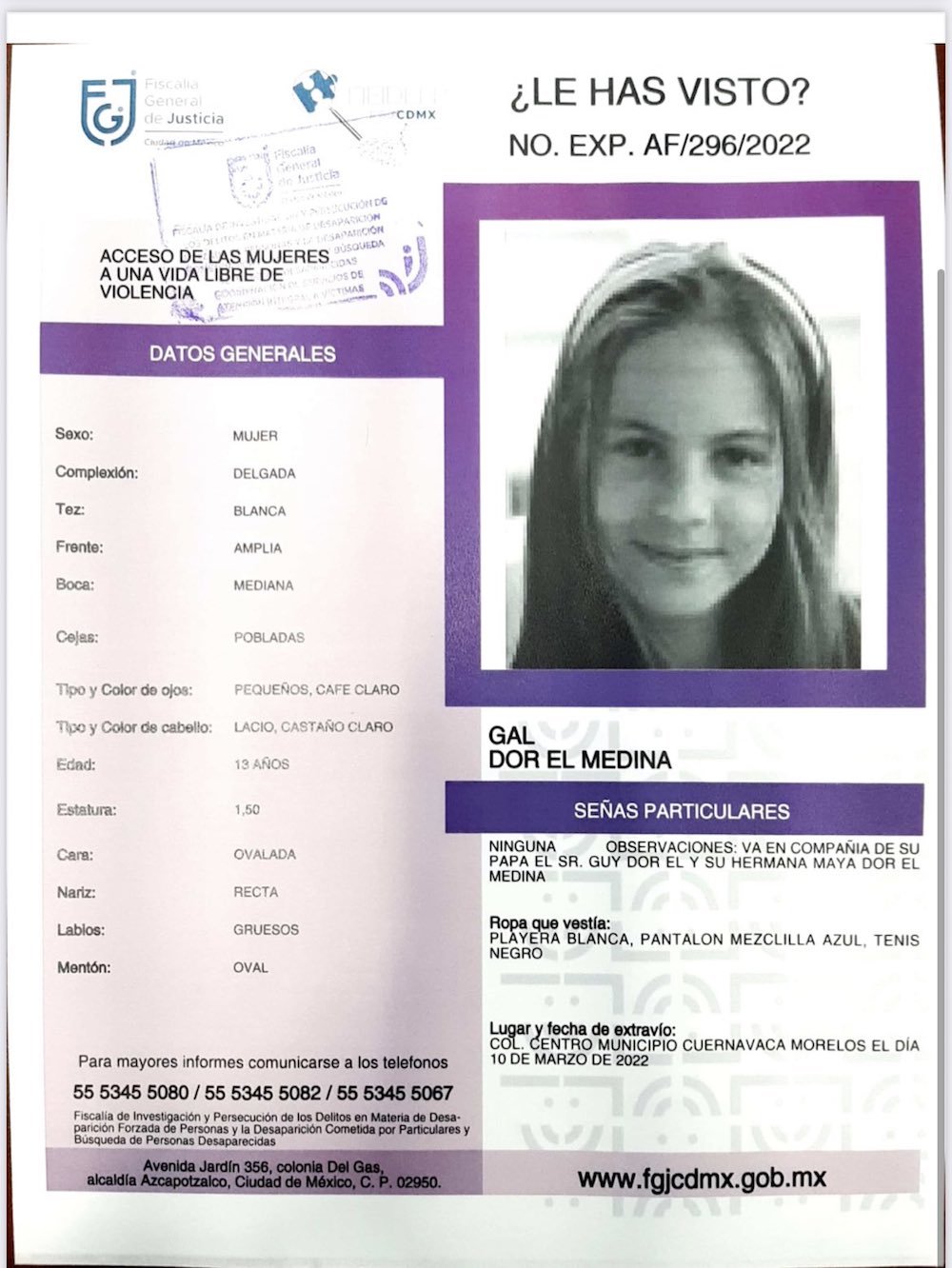 Después del boletín de la SRE, la familia de las niñas compartió la alerta Amber girada para dos de las menores.
