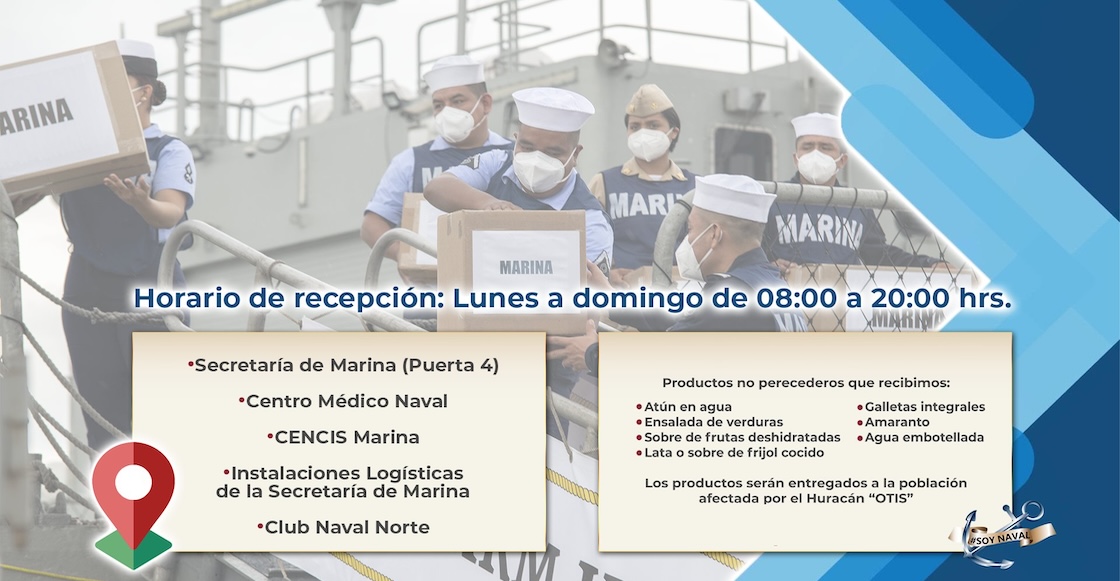 De lunes a domingo, de 8 am a 8 pm, estarán habilitados 5 centros de acopio de la Semar en: la Secretaría de la Marina, Puerta 4, el Censis de la Marina, el Club Naval Norte y las instalaciones Logísticas de la Semar. ¿Con qué podemos ayudar? Va la lista: