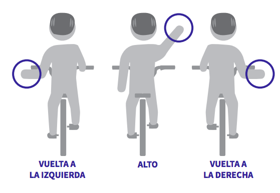 En estos casos específicos los ciclistas tienen derecho a ocupar un carril completo. Si van a cambiar de dirección o cambiar de carril, deben hacer la señal correspondiente con el brazo o con la mano.