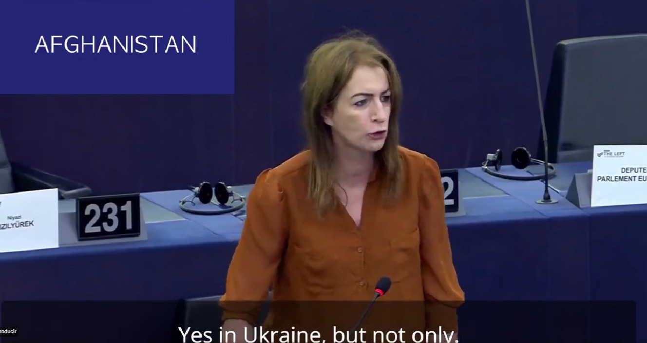 “No hay duda de ello, vivimos en tiempos de crisis catastrófica donde las vidas de civiles inocentes están siendo sacrificadas en las guerras de sus amos. Sí, en Ucrania, pero no sólo ahí. Desde la última reunión del pleno (del Parlamento Europeo), decenas de miles de ciudadanos afganos se han visto obligados a huir en busca de comida y refugio“, mencionó.