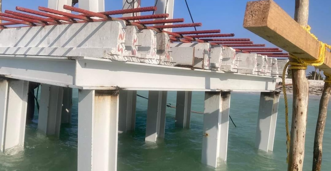 De acuerdo con las fotografías compartidas por el Ayuntamiento de Progreso —quienes mandaron a construir tremendo dolor de ojos—, la estructura se encuentra anclada en pilotes de acero, con vigas de metal y varillas.