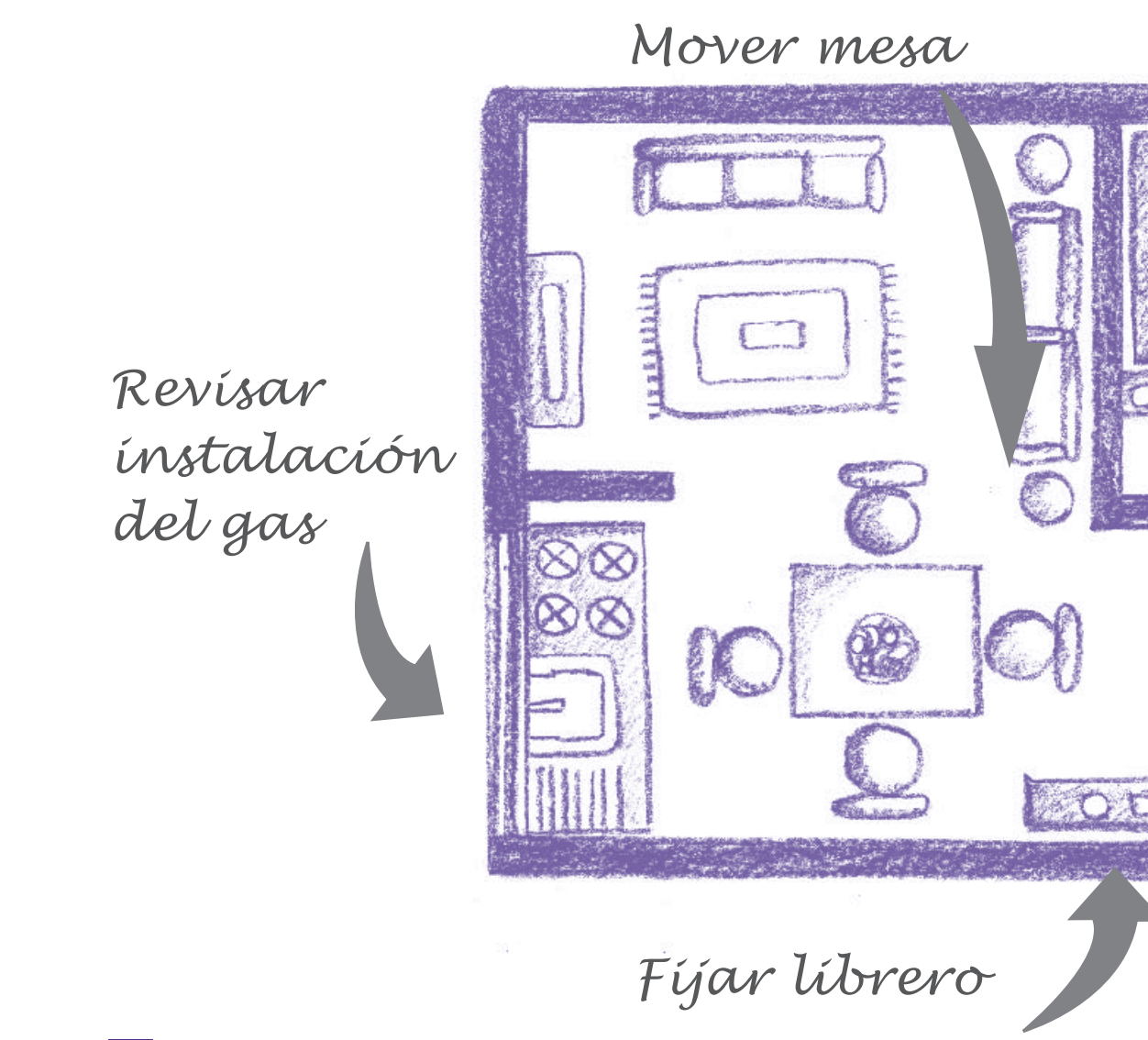Con este mapa vas a poder detectar todas las cosas que debes revisar. Por ejemplo, muebles o cuadros que necesiten ser fijados para evitar que se caigan si tiembla.