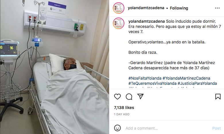 Recientemente el papá de Yolanda, Gerardo Martínez, fue hospitalizado por problemas derivados de una alta presión que le provocó la búsqueda incansable de su hija.