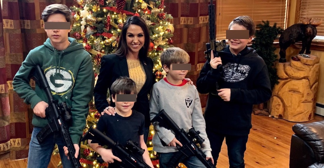 Sí, en la foto aparecen cuatro niños sosteniendo rifles mientras que la congresista republicana por el tercer Distrito de Colorado, Lauren Boebert, sale sonriente, teniendo como fondo un árbol de Navidad.