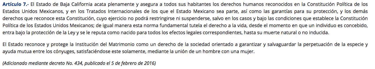 Antes de hablar de lo que pasó, hablemos del artículo 7 de la Constitución de Baja California, que reconoce “el derecho a la vida desde el momento en que un individuo es concebido”, además desde que desde ese momento se le “reputa como nacido para todos los efectos legales correspondientes”.