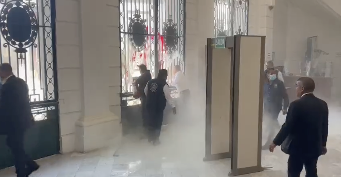 Los policías —desde adentro del Congreso de CDMX— lanzaron gases, extintores y amenazaron con un tubo a los manifestantes LGBT. En los videos podemos ver cómo se puso el caos.