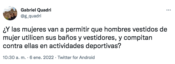 “Somos seres humanos, tenemos los mismos derechos… y no voy a permitir además como legisladora y como presidenta de la Comisión de la diversidad de mi país, de mi partido Morena, que un legislador del Partido Acción Nacional llamado Quadri, haga el uso de su poder para agredirnos de esta manera“, explicó Luévano; “Se trata de libertad de expresión, no se vale que las personas transexuales se sientan infalibles y que nadie puede criticarlas”, decía él.