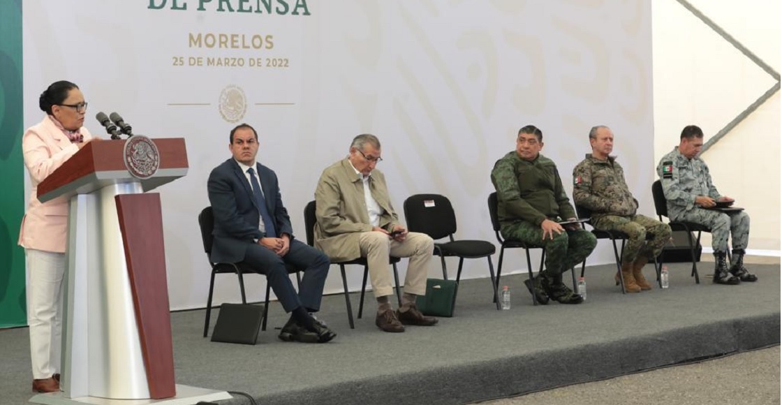 En esa mañanera, además de estar junto a AMLO, la titular de Seguridad se rodeó del encargado de la Secretaría de la Defensa Nacional (SEDENA), el general Luis Cresencio Sandoval y el titular de la Marina, el almirante José Rafael Ojeda.