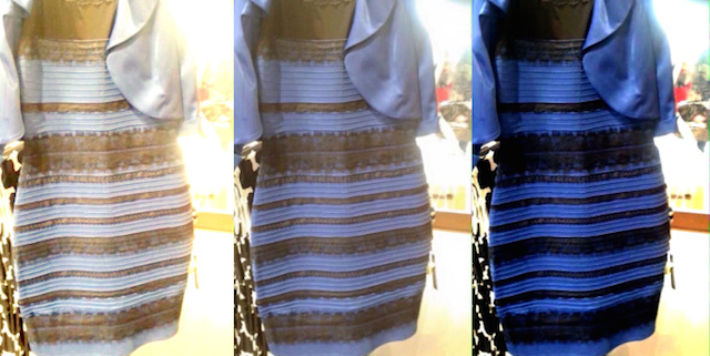 Y de pronto, durante la tarde-noche de ayer el mundo del Internet se conmocionó con la fotografía de un vestido que la gente veía de distinto color. Mientras unos decían que era azul y negro, para otros la prenda era blanca con dorado. Aunque también hubo algunos loquillos que lo veían gris.