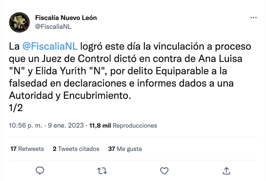 El 9 de enero tuvieron una audiencia y ahí una jueza de Control las vinculó a proceso. Ahora, las extrabajadoras del motel Nueva Castilla deberán ir a firmar de manera periódica ante las autoridades y tienen prohibido salir de Nuevo León, mientras avanzan las investigaciones —tres meses es el plazo del cierre de esta investigación.