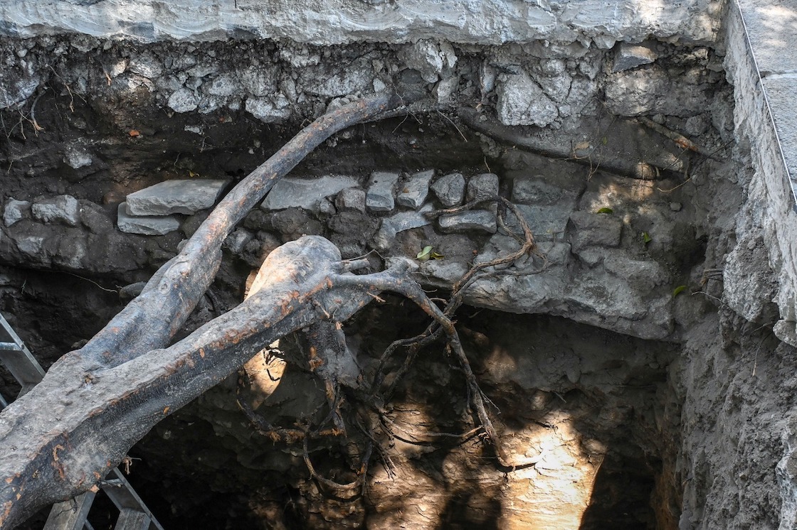 Igual los arqueólogos encontraron un apantle de 40 centímetros de espesor de la época colonial temprana, más o menos del siglo XVI, que distribuía agua de la caja imperial Colegio de Santa Cruz de Tlatelolco.