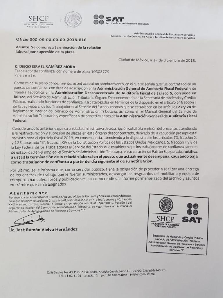 Despidos en el SAT. pic.twitter.com/oql8DVipft