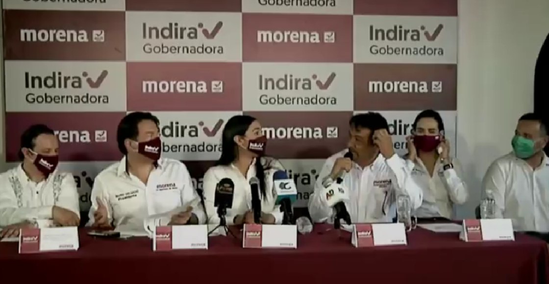 Y pues nada, como es común en este tipo de visitas, se ofreció una conferencia de prensa donde también estuvieron presentes Indira Vizcaíno, candidata de Morena a la gubernatura de Colima; Rosi Bayardo, candidata a diputada; Javier Pinto, militante de Nueva Alianza (sí, aunque usted no lo crea, este partido aún existe en ciertos estados); Hirepan Maya, diputado Federal; y Sergio Jiménez Bojado, dirigente estatal de Morena en Colima.