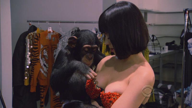Sucede que la jugosita y pechugona Katy Perry realizó una sesión fotográfica para la revista neoyorkina Missbehave, en la que tuvo la oportunidad de convivir con un simpático chimpancé.