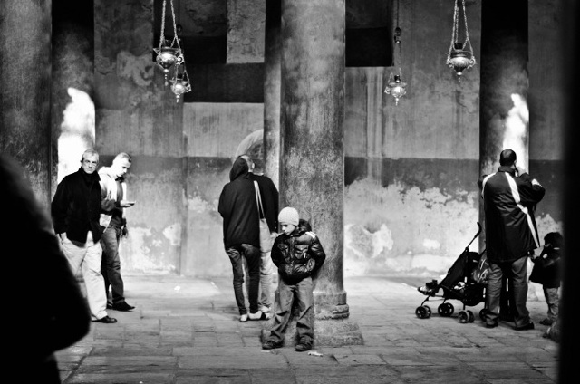 En Jerusalén, por ejemplo, es muy impresionante esta cuestión de la convivencia. Hay un chingo de tensión, lo ves en la gente, lo ves en la cantidad de soldados, lo ves entre los chavitos. Mucha gente anda con miedo, con prepotencia, un chingo de soldados. Pero, al mismo tiempo tiene un onda como de Disneylandia. Te venden un chingo de recuerditos y tiene todo el discurso de ser la Holy Land.