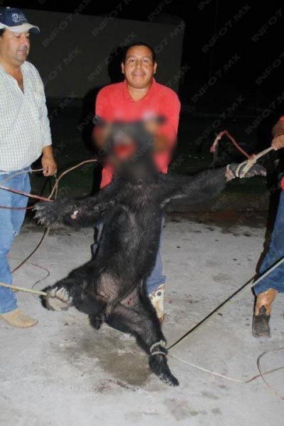 Ayer en la noche comenzaron a circular fotos en las redes sociales que mostraban cómo una osezna negra de entre dos y tres años, era atada y estirada tanto por elementos de Protección Civil del municipio, como por otras personas no uniformadas, quienes con tono de burla posan junto al animal. Hasta niños había. Como era de esperarse, las imágenes causaron indignación.