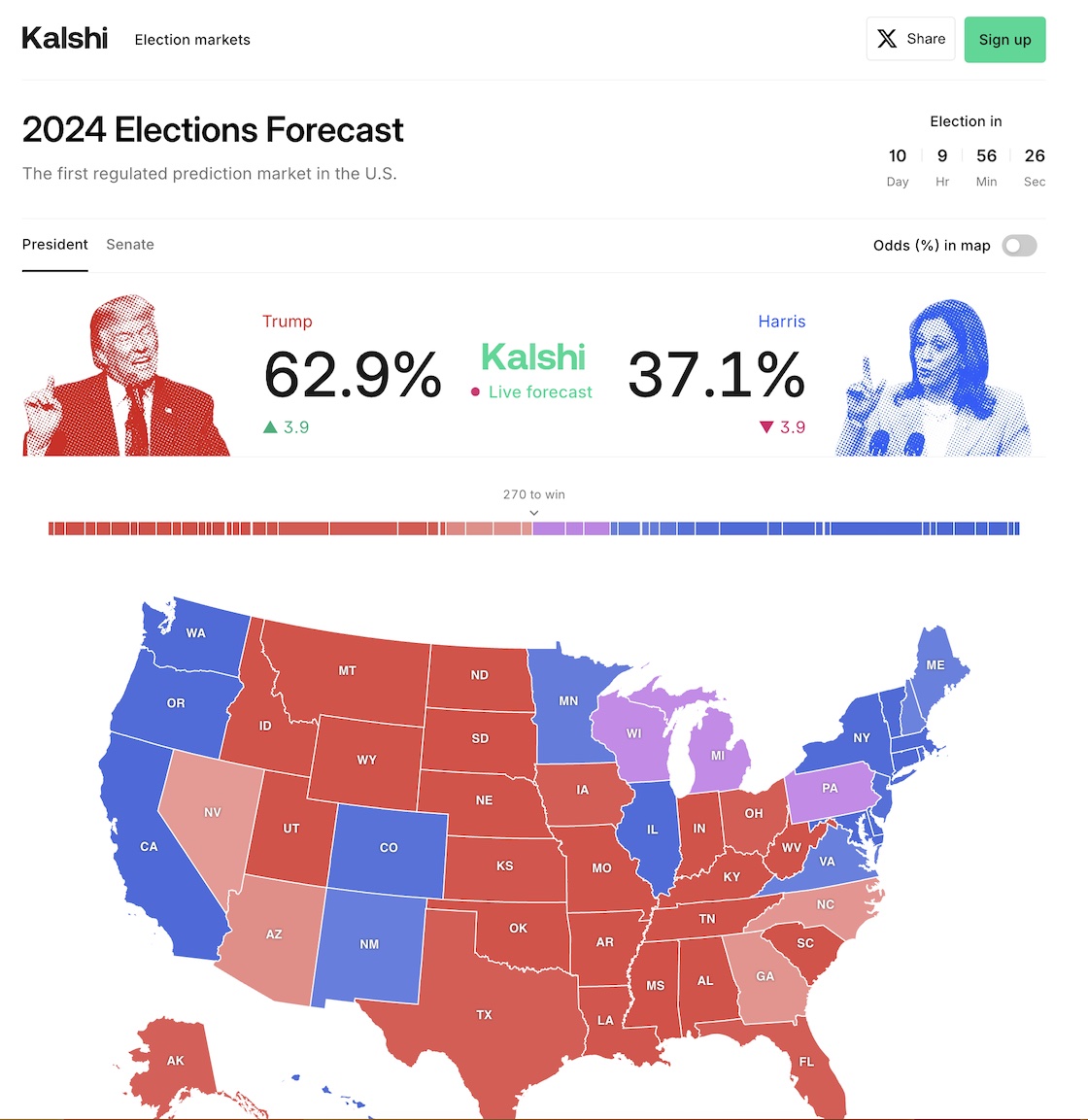 Luego se soltaron con quién ganaría la Presidencia de Estados Unidos —Donald Trump o Kamala Harris— y los estados.