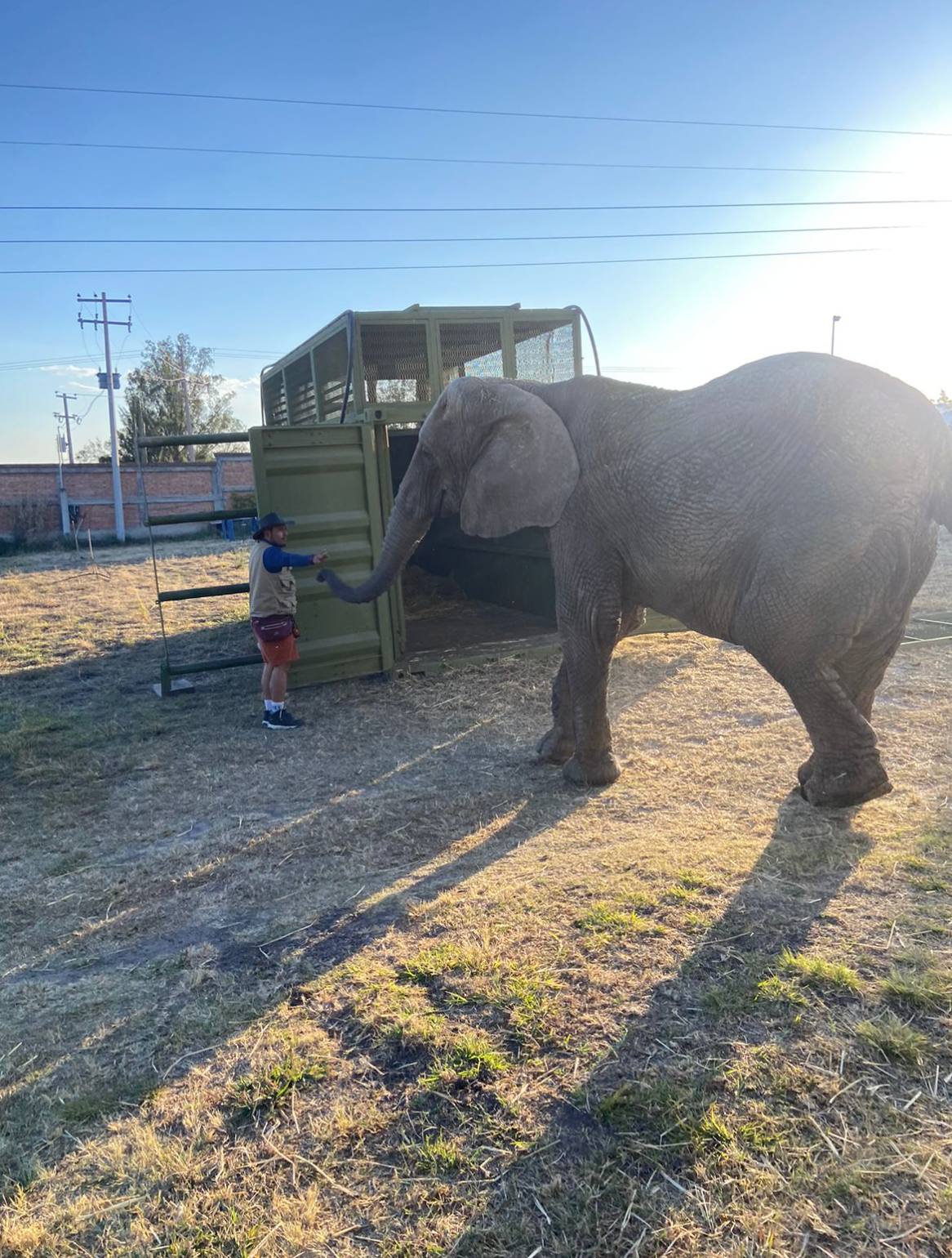 ¿Cuándo van a agarrar camino rumbo a la CDMX? Depende de que la elefanta esté calmada dentro del contenedor. Eso sí, todo el camino será resguardado por elementos de la Guardia Nacional.