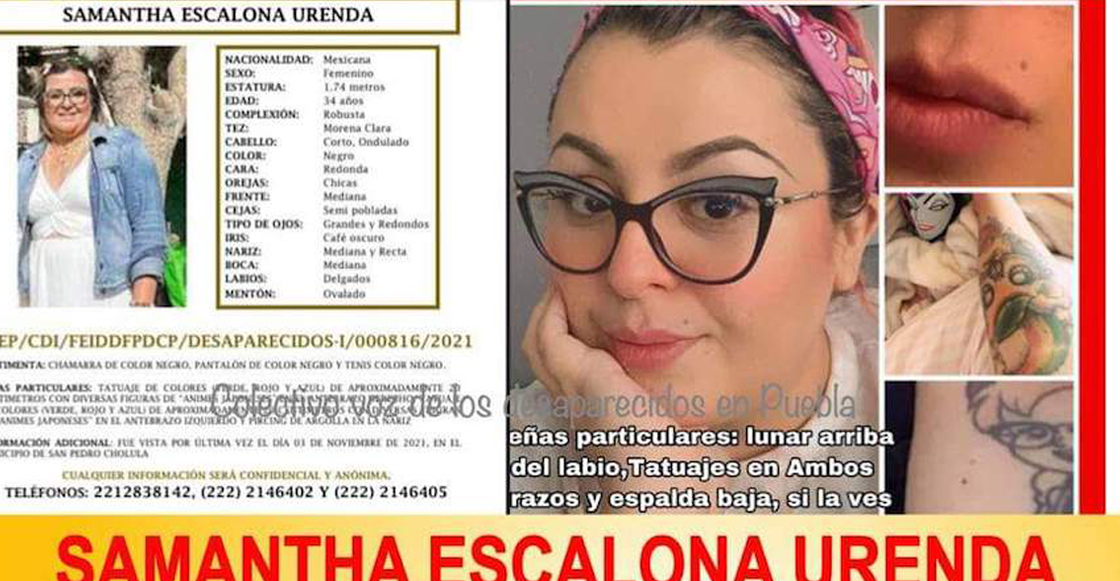 72 horas después de su desaparición, el pasado sábado 6 de noviembre las autoridades de Puebla informaron que encontraron con vida a Samantha Escalona Urenda, mujer de 34 años que el pasado 3 de noviembre fue reportada como desaparecida después de salir de su casa en el barrio de Santa María Xixitla.